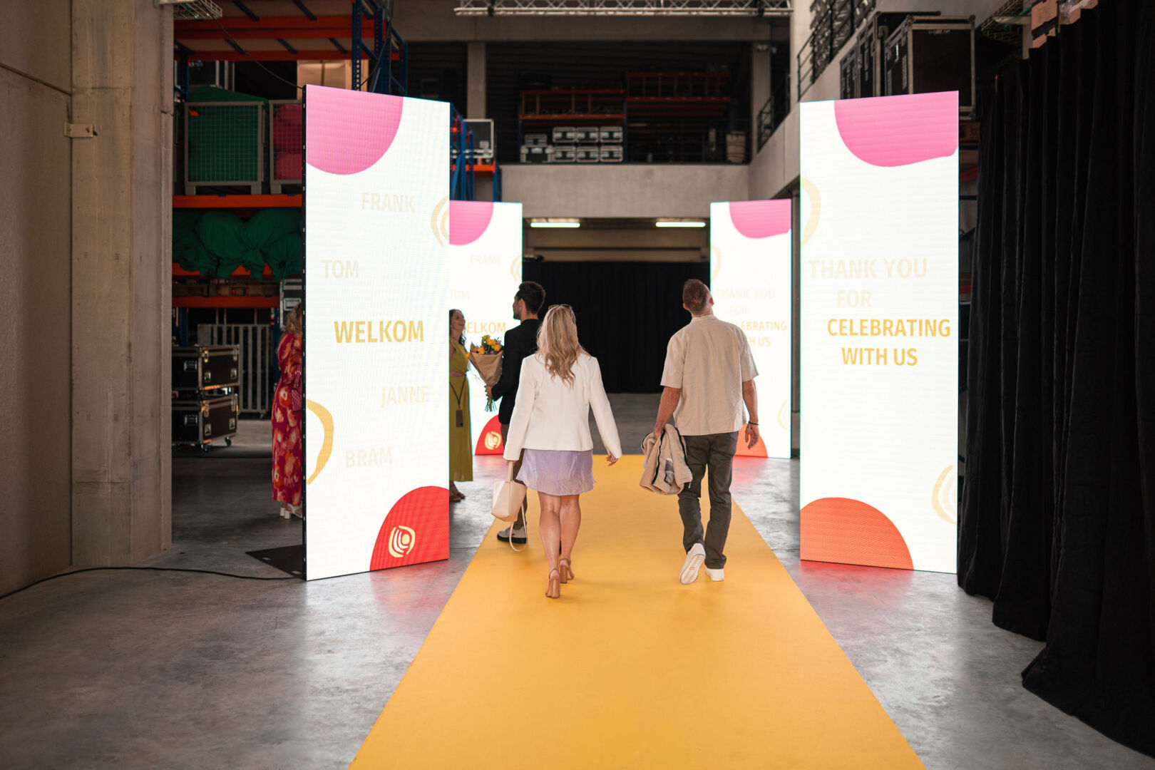 De gele loper werd uitgerold en de imposante LEDzuilen heetten iedereen persoonlijk welkom. Een warm onthaal in onze typische D-Dream-stijl: creatief, gastvrij en met een speelse twist.