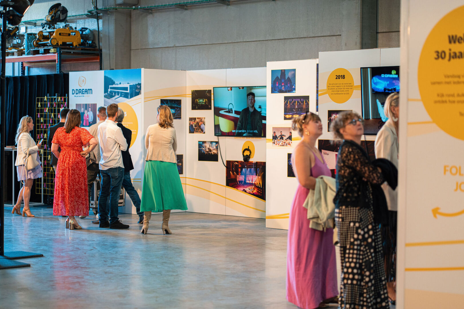 Daarna nam de experience wall de gasten mee op een reis door de tijd. Verhalen van klanten, anekdotes van collega’s en partners brachten drie decennia dromen en doen tot leven. Van fuiven voor Radio Donna tot bedrijfsfeesten waarover nog steeds wordt nagepraat… dát zijn de momenten die ons verhaal kleur geven.